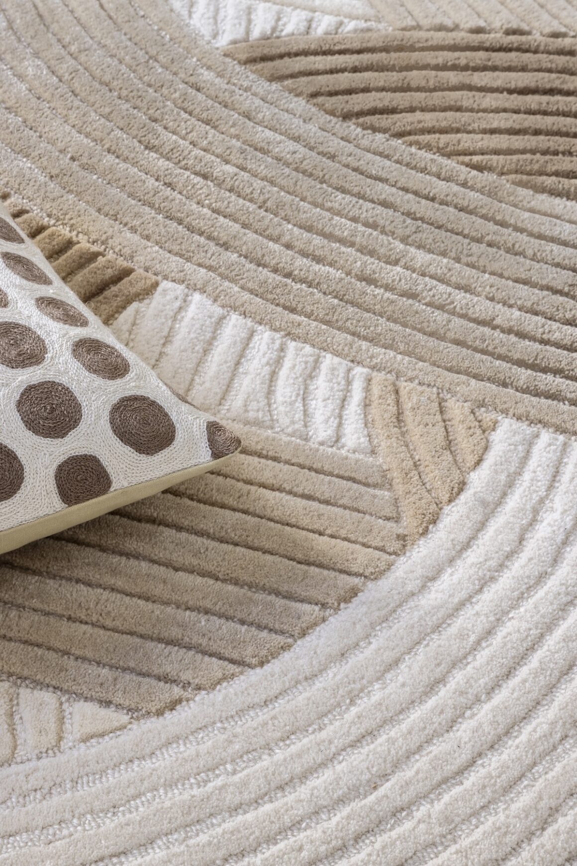 Enfin, deux best-sellers s’offrent de nouvelles déclinaisons chromatiques : le tapis DOTT de Claire Buet, au graphisme intemporel, et le tapis DUNE de Charles Kalpakian, dont les courbes inspirées du désert se parent cette saison de reflets cuivrés et bordeaux.